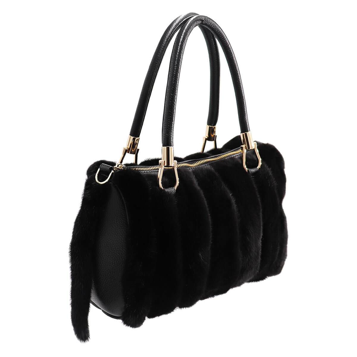 Mink Fur Handbag with Tails Our Mink Fur Handbag just screams style! This ultra-chic bag features sleek real mink fur, leather straps, and two luxuriously soft...