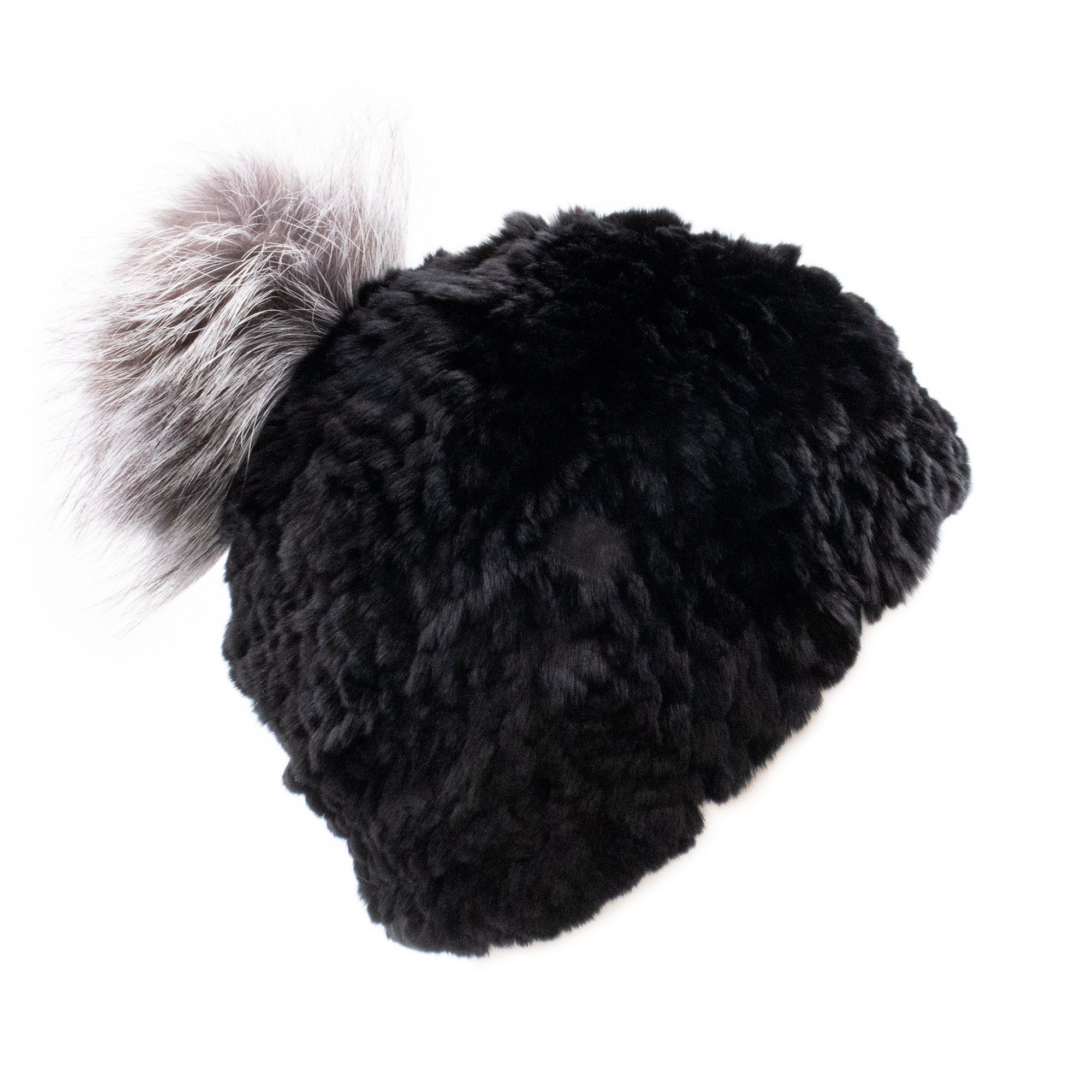 Rabbit Fur Beanie with Fox Fur Pom Add elegance and style to your cold season wardrobe with the women’s Rabbit Fur Beanie with a Fox...
