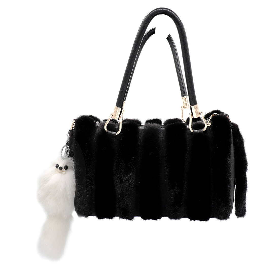 Shearling Bag with Mink Pom Keychain Bring some style to your set of keys with this Shearling Mink Bag Keychain! This keychain features soft shearling and mink...