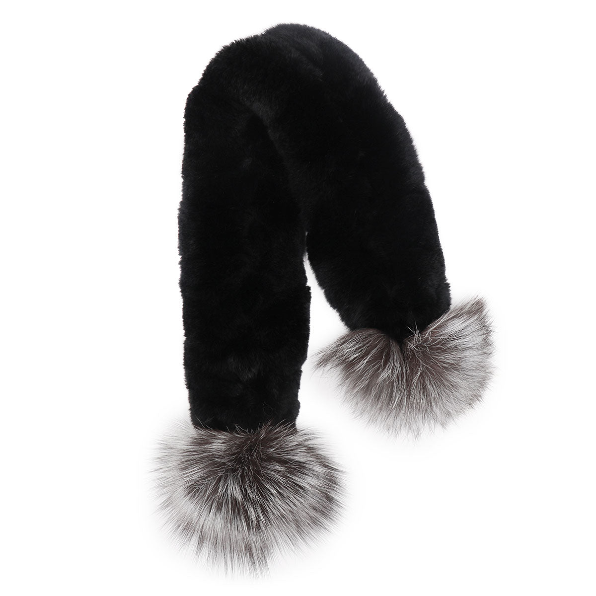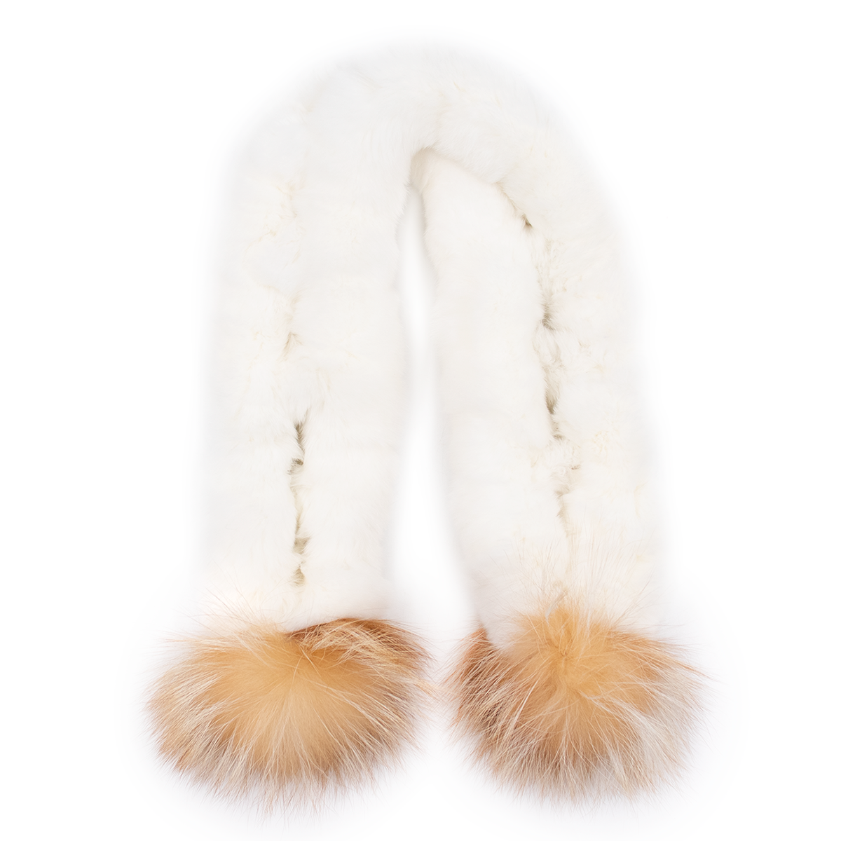 Rex Rabbit Scarf with Fox Fur Poms Fashionable and functional, this Rex Rabbit Scarf with Fox Poms adds just the right amount of style to any...