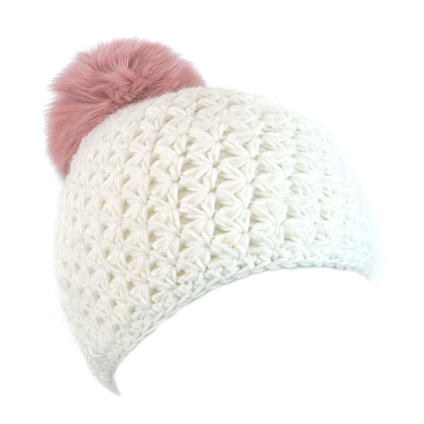 Children's Snowflake Beanie with Faux Fox Fur Pom