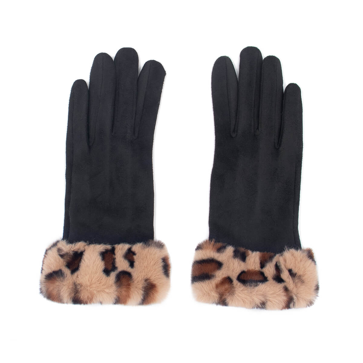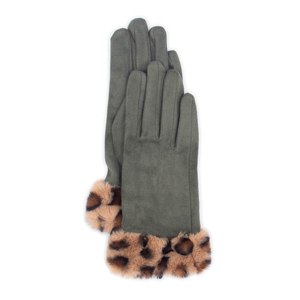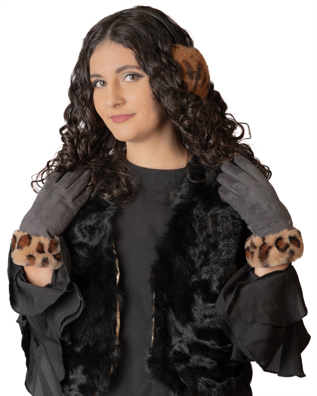Faux Suede Gloves with Spotted Faux Rex Rabbit Fur Cuff