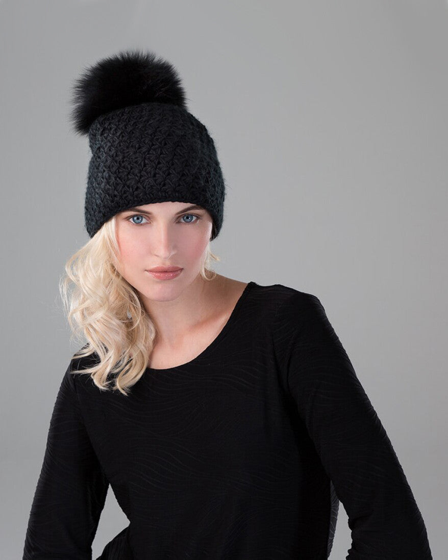 Stay stylish and warm this winter with the Handmade Star Knit Hat with Fox Pom by Surell Accessories. This beautifully crafted hat features a soft and cozy cable knit design, paired with a plush fox fur pom for a playful yet elegant touch. Versatile enough to wear to the office or during casual outings, this chic accessory is perfect for elevating your cold-weather wardrobe while keeping you comfortable in any setting.