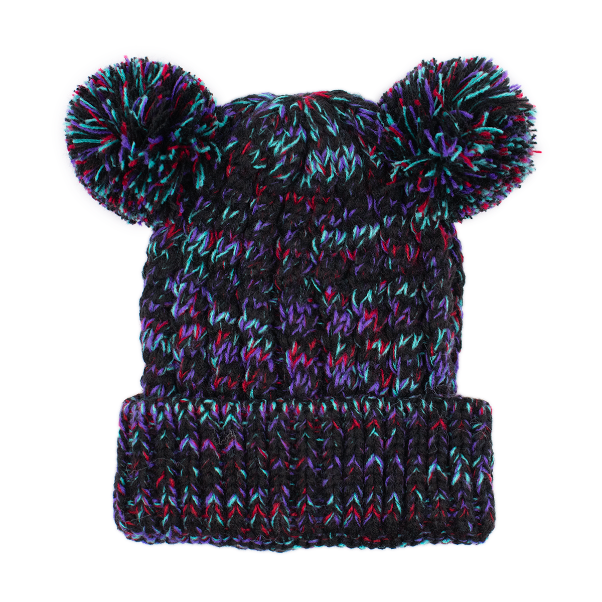 -Incredibly Soft Knit beanie with two Yarn Poms features a foldable cuff for maximum comfort one size fits ages 2-4 (Stretches to 10in)
