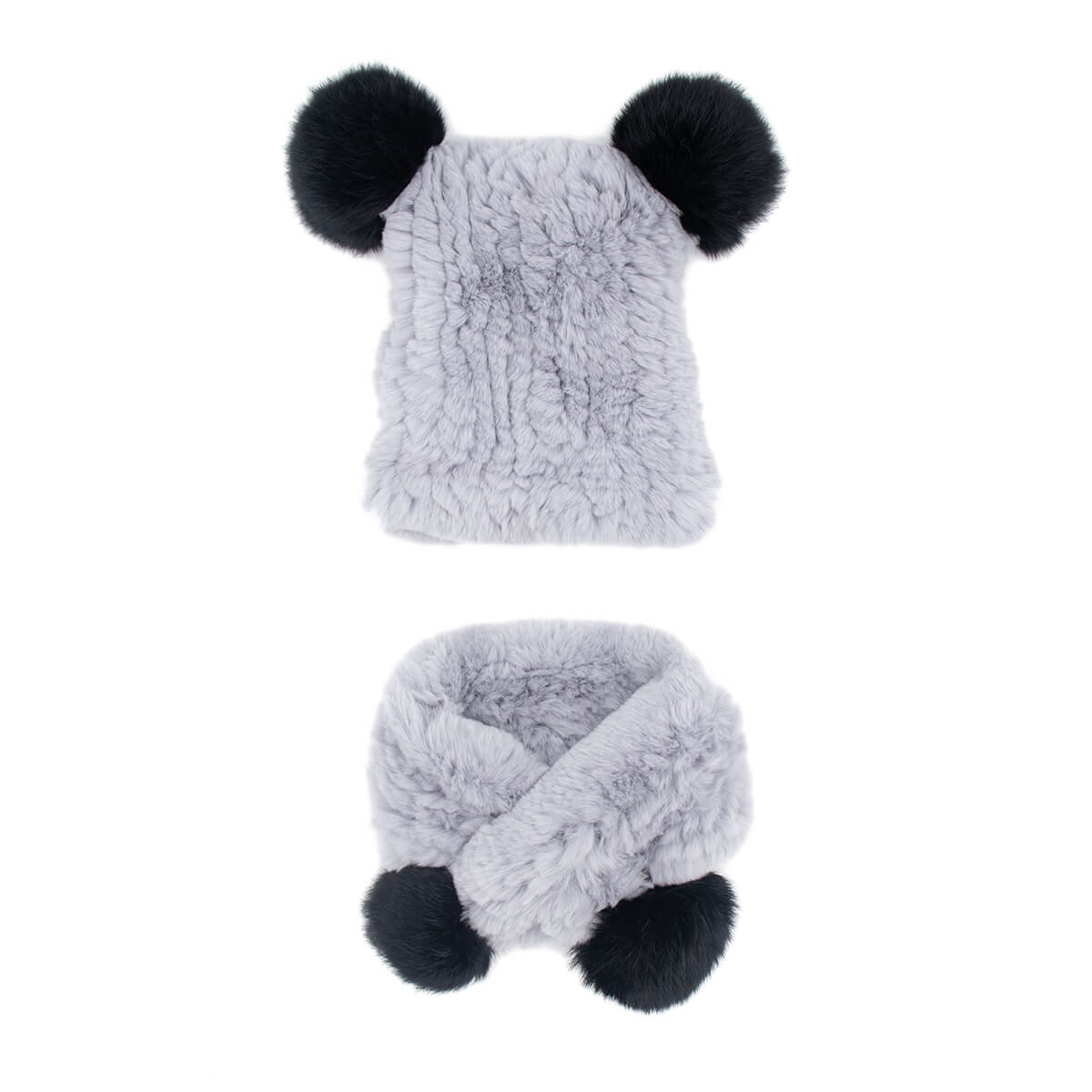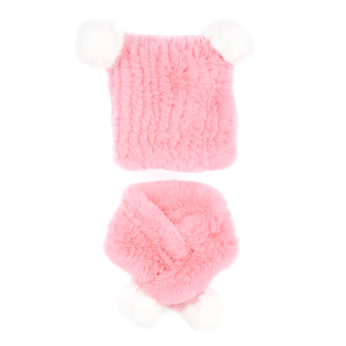 Children's Rex Rabbit Fur Textile Knit Hat and Scarf Set