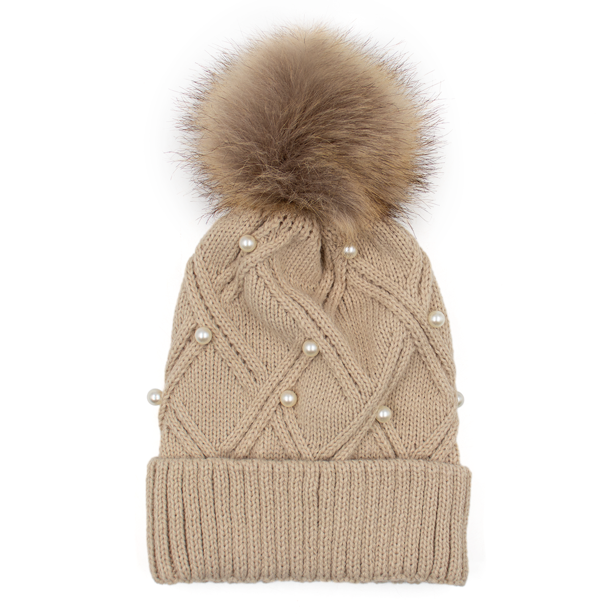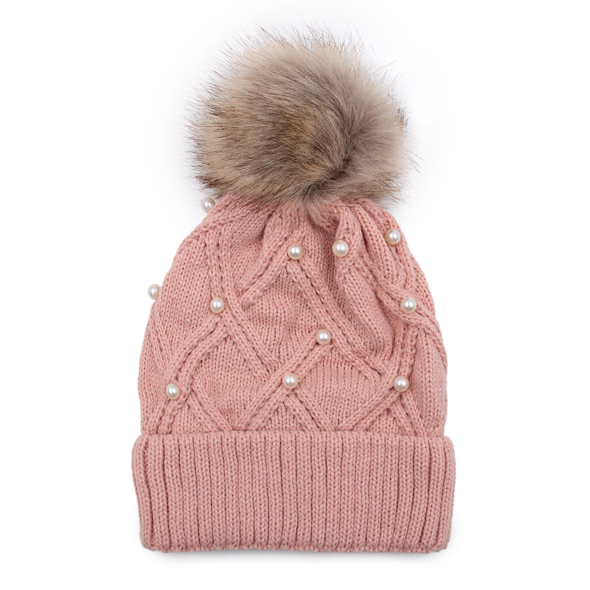 This gorgeous Knitted Hat is definitely a winter season must have. Warm, fashionable and soft, this knitted pompom beanie features a beautiful knit pattern with Pearls and soft faux fur pom. This hat will keep you warm and stylish during the chilly season.