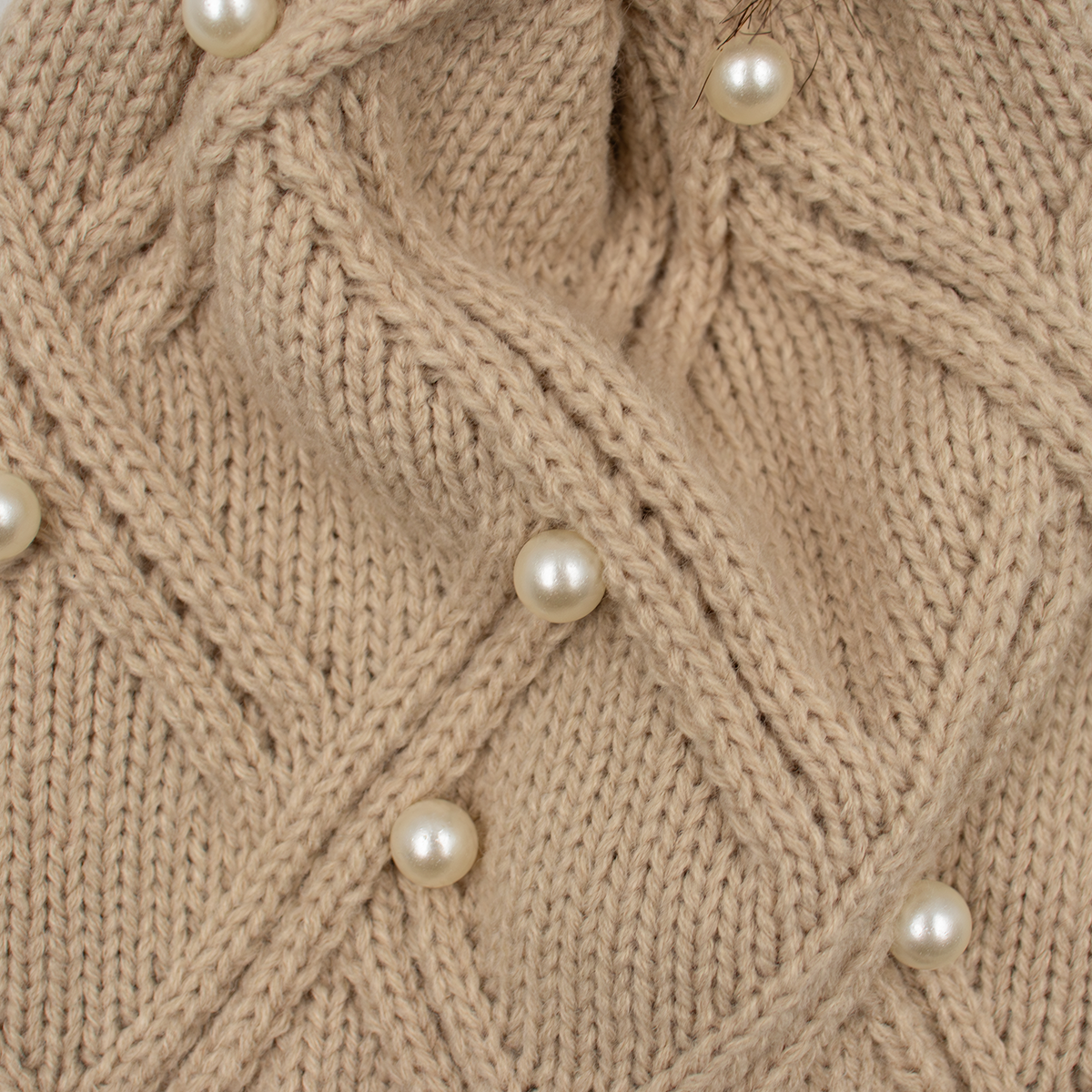 Knit Hat with Faux Fur Pom and Pearl Detail