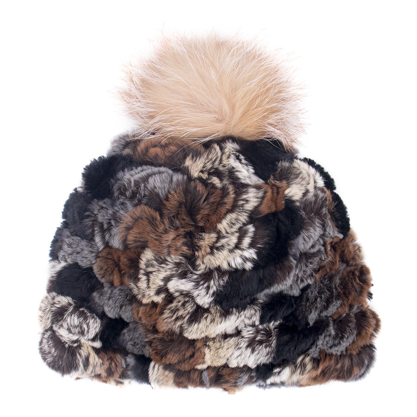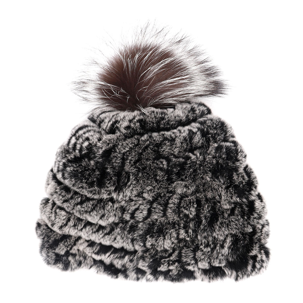 Rex Rabbit Fur Knit Hat with Fox Pom