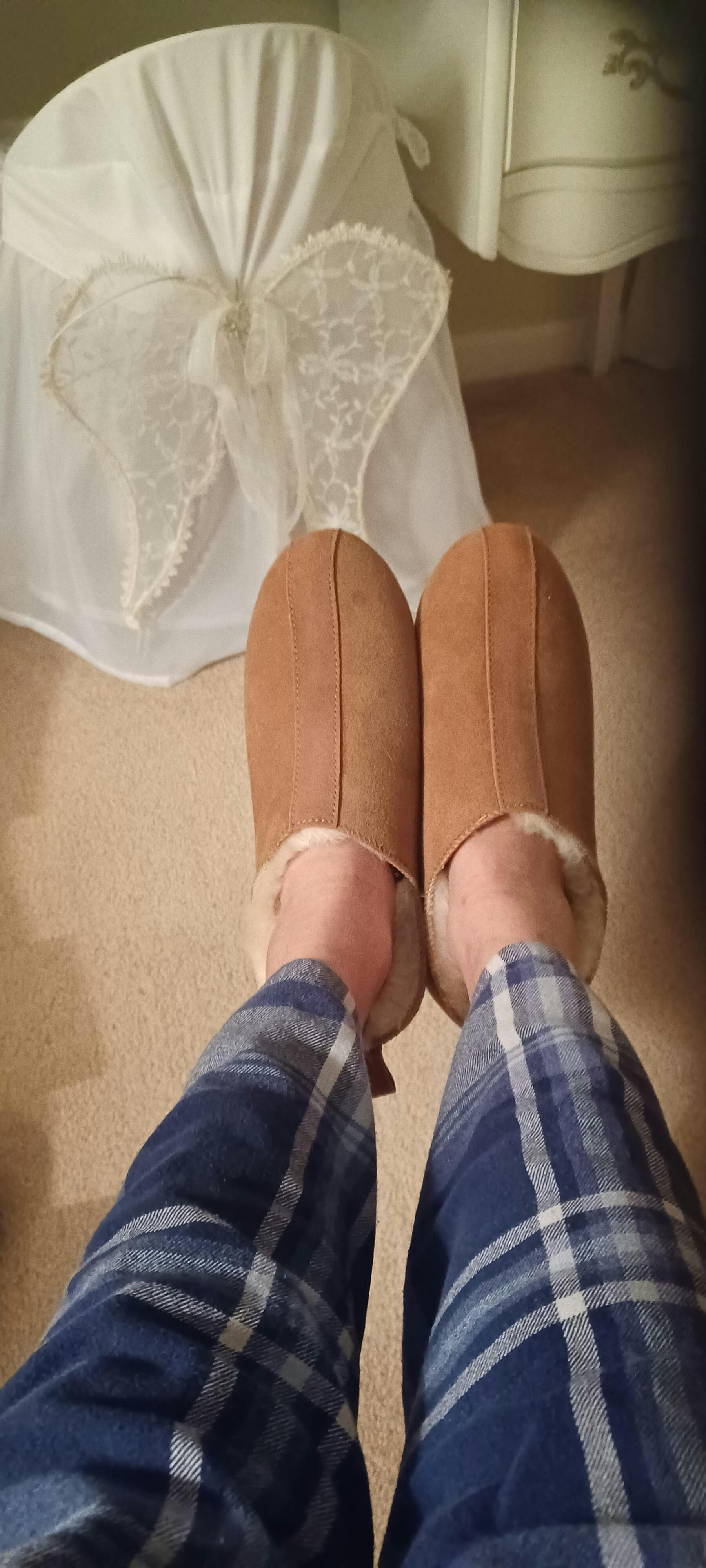 Say hello to your new favorite slippers! They're crafted from premium suede and shearling materials, making them incredibly soft and plush. Work from home, cozy up with a good book, or watch your favorite movie in complete comfort.