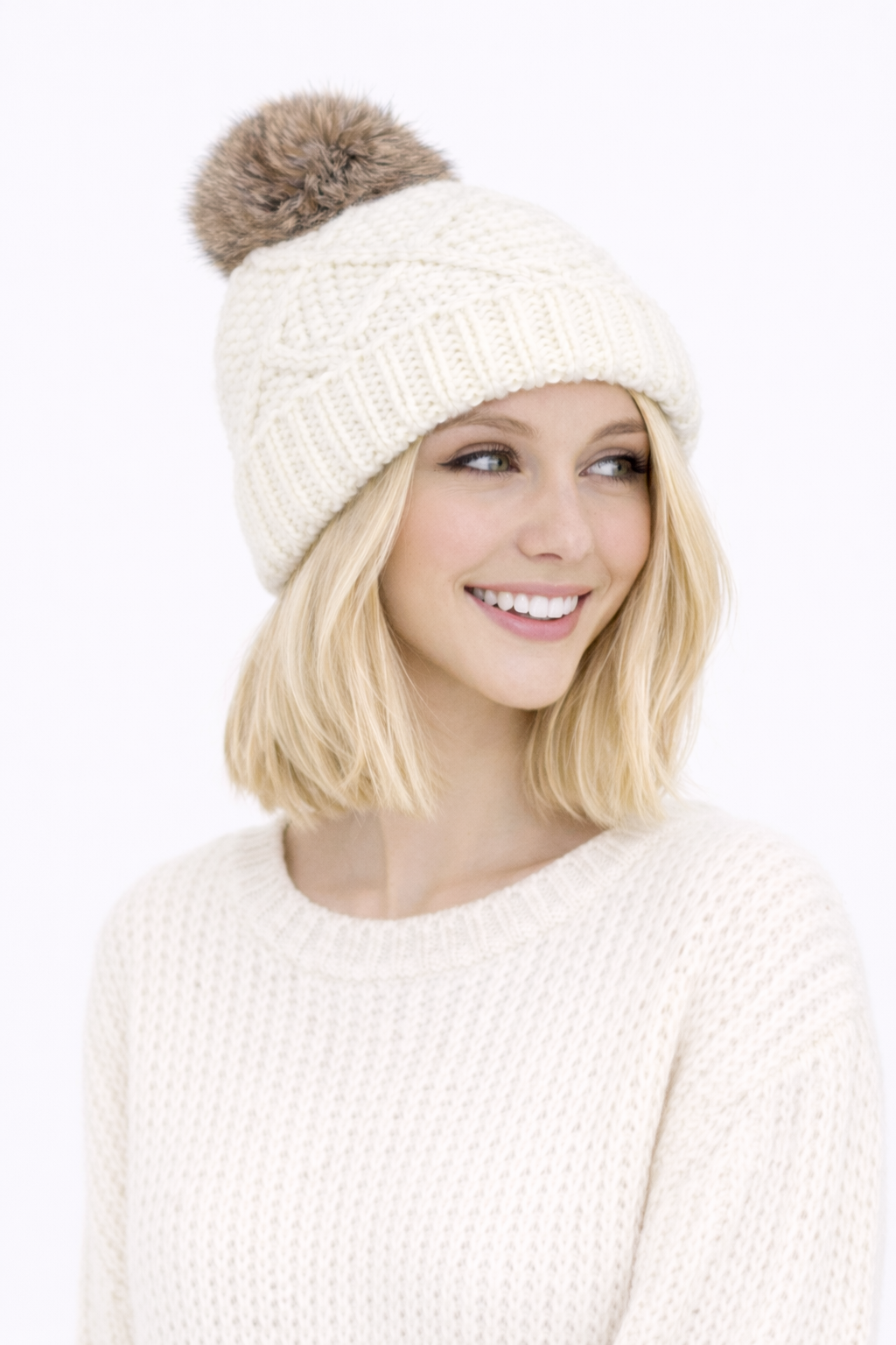 Stay cozy and stylish on sunny, chilly days with the Women’s Visor Beanie featuring a luxurious Rabbit Fur Pom. Designed with a visor to protect your eyes from the sun while keeping your head warm, this knit hat is perfect for those bright yet cold winter days. The soft rabbit fur pom adds a playful and elegant touch, making this beanie both functional and fashionable. Ideal for winter outings or casual days, it offers the perfect balance of warmth and style.